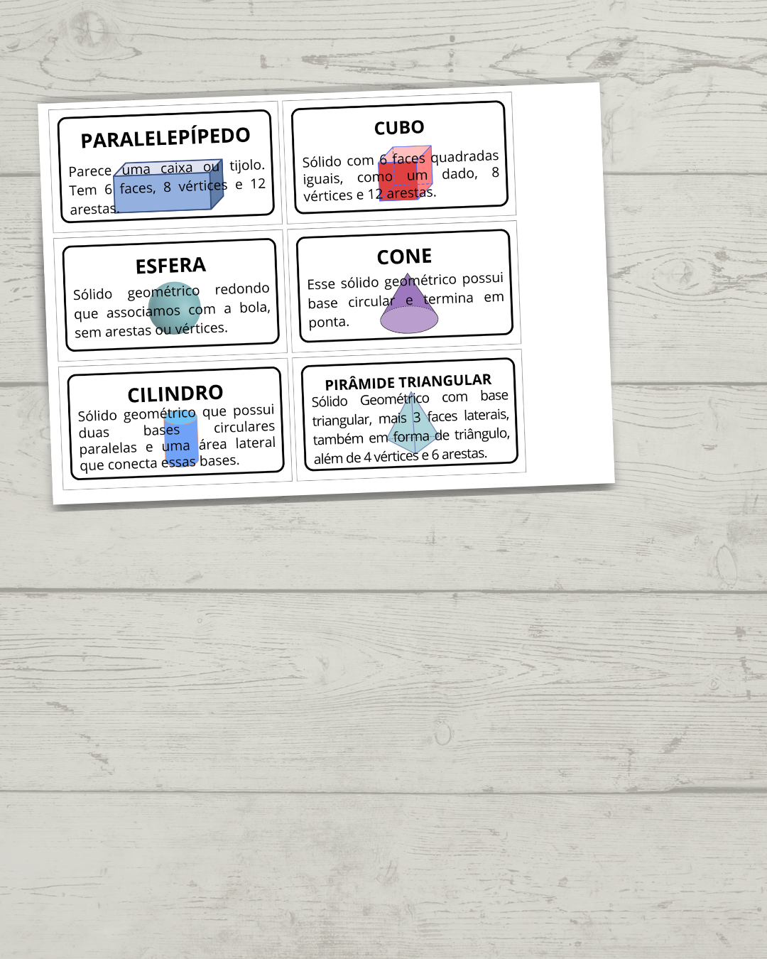 O “Bingo: Formas Geométricas” é um recurso lúdico criado para fortalecer o reconhecimento e a diferenciação entre figuras planas e sólidos geométricos. Através da brincadeira, os alunos desenvolvem habilidades de observação, memorização, associação e escuta ativa, além de fixarem conteúdos importantes de geometria de forma divertida e engajadora.