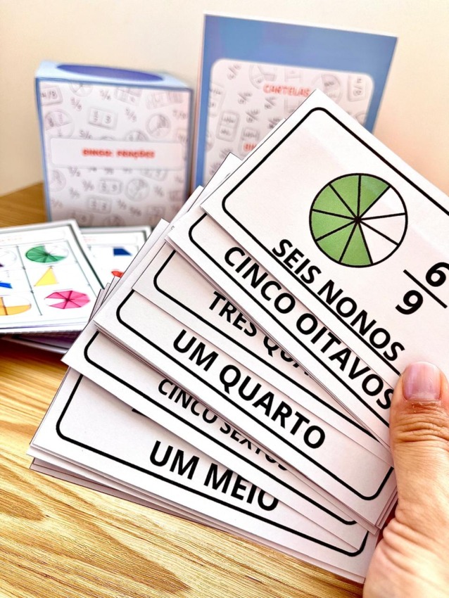 • 40 cartelas de bingo (cada uma com 9 frações diferentes);