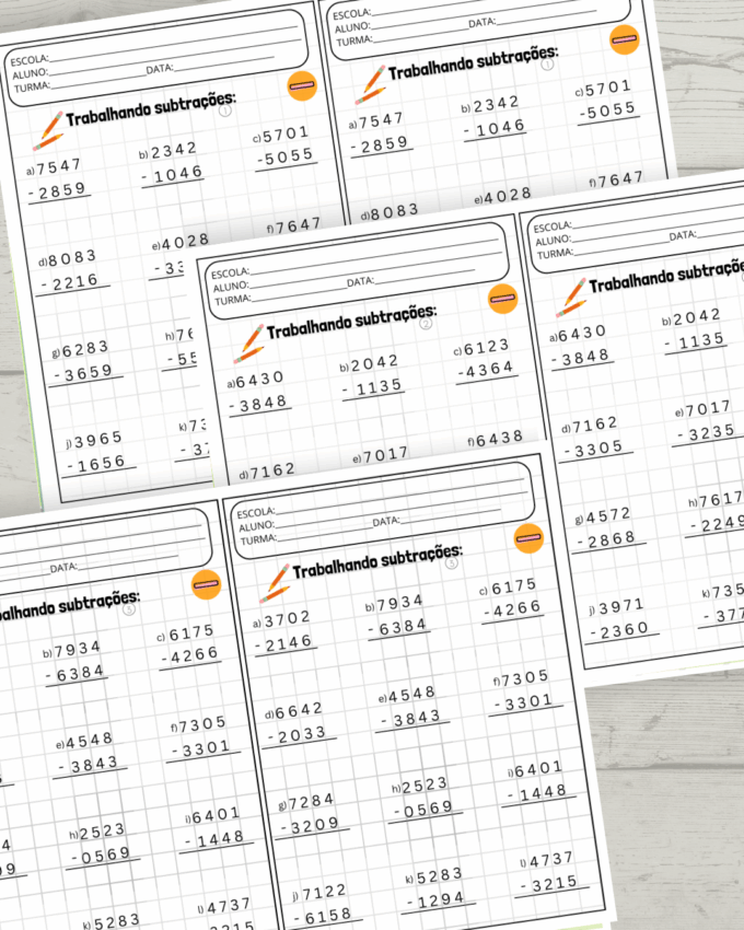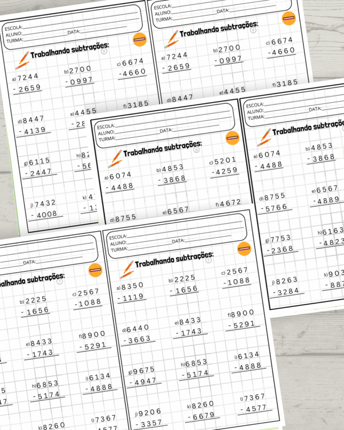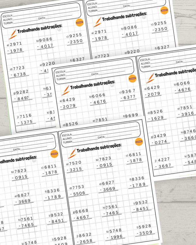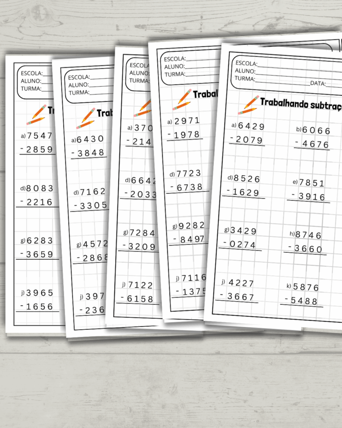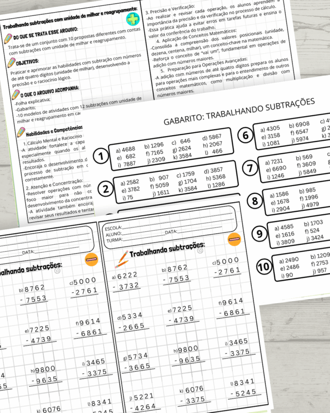 com subtrações com unidade de milhar e reagrupamento. O arquivo acompanha: